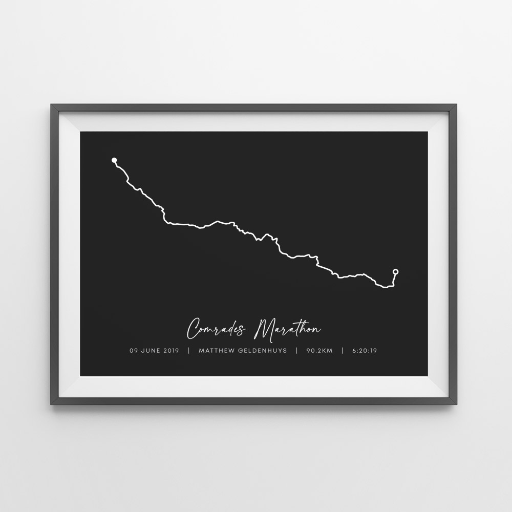 Should you require larger prints, square prints or custom prints, please email us at prints@mymarathonmaps.co.za.